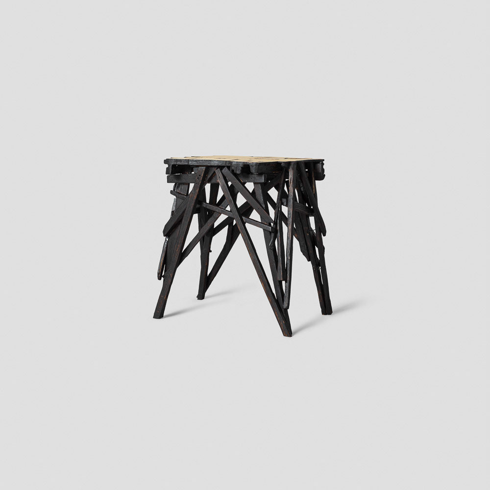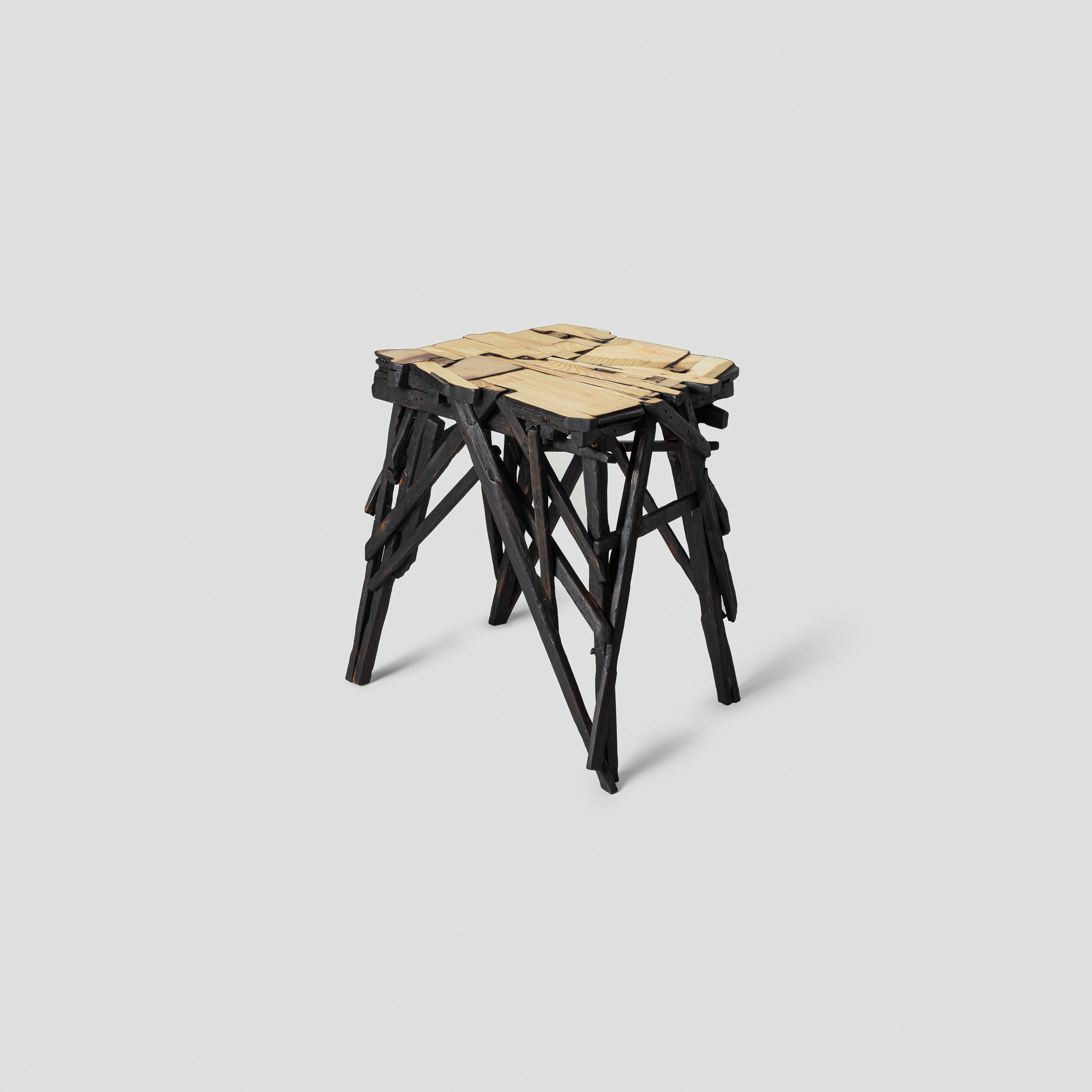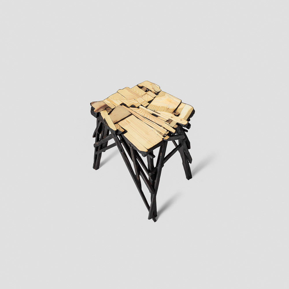 2024 Offcuts, predominantly coniferous, nailed, glued, charred, oiled 35 x 35 x 44 cm